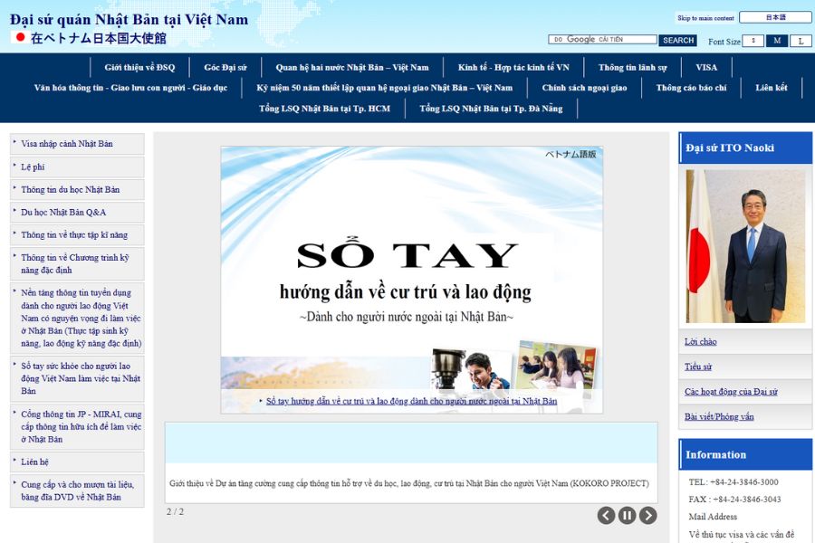 website Đại sứ quán Nhật Bản